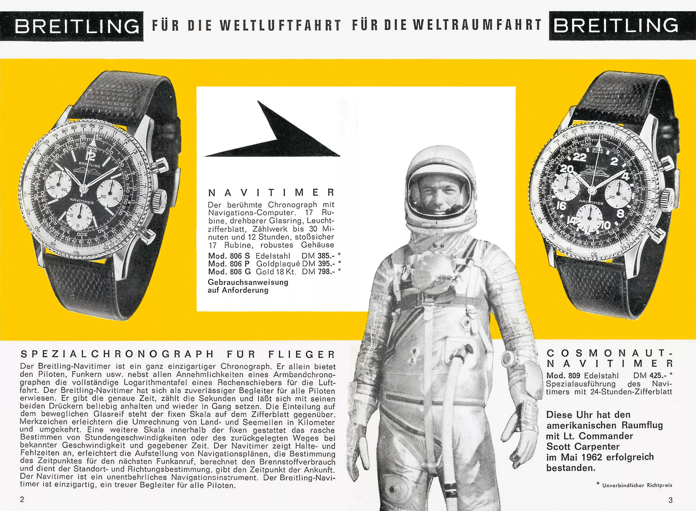 Le 24 mai 1962, Scott Carpenter a effectué trois orbites autour de la Terre dans le cadre de la mission Mercury-Atlas 7, devenant ainsi le deuxième Américain à réaliser cette prouesse. À son poignet : une Navitimer unique en son genre, fabriquée sur mesure par Breitling pour aller dans l’espace.