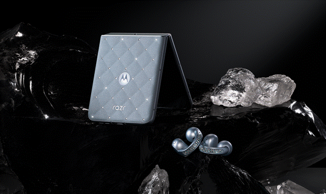 Et si la technologie adoptait les codes de la haute couture et de la joaillerie ? Avec “The Brilliant Collection”, Motorola confie à Swarovski l’icônique razr comme on confierait une étoffe précieuse à une maison de couture. Le cuir se glace, les cristaux s’invitent, le geste devient ligne. À ses côtés, les écouteurs moto buds loop complètent la silhouette, discrets et scintillants, comme un bijou.