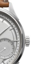 Comment ne pas être séduit en découvrant la scénographie des informations au sein de la Royale Paris ? Outre le jour et la date dans le double guichet à 12 heures, on retrouve la petite seconde, l’affichage des phases de lune et l’indicateur de la réserve de marche. Cette richesse fonctionnelle intègre un cadran aux multiples textures et reliefs survolé par le duo d’aiguilles des heures et des minutes habillées de matière luminescente. Aucun chiffre ne vient surcharger cette composition aérée qui offre une excellente lisibilité. Une réelle sensation qualitative se dégage de ce garde-temps à la personnalité raffinée.