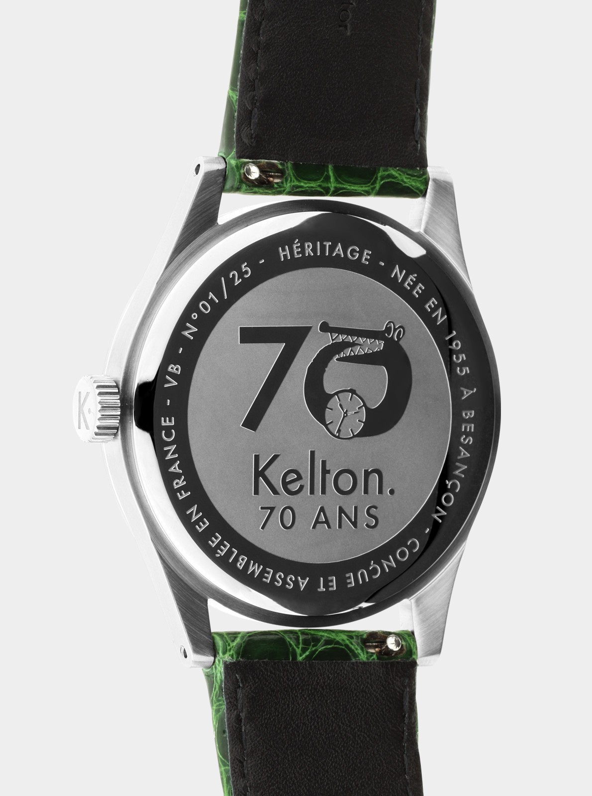Kelton confirme son statut d’icône pop en mouvement, capable de traverser les générations avec ses modèles intemporels. Avec la montre Héritage Croco 70 ans, Kelton s’inspire cette fois-ci des « Dirty Dozen », ces montres commandées par l’armée britannique à douze manufactures suisses pendant la Seconde Guerre mondiale. Pour célébrer ce lancement, la marque propose une édition limitée à 100 exemplaires numérotés de 1 à 100. Cette montre unisexe se distingue par un cadran blanc lumineux et un bracelet vert en alligator véritable fabriqué en France, clin d’œil raffiné au savoir-faire de la marque. Cette nouvelle pièce tend à séduire autant les passionnés que les amateurs de montres, inspirant diversité, originalité et élégance.