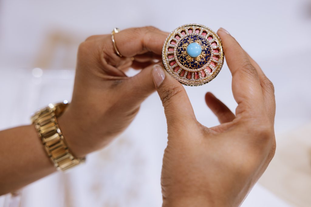 L’artisanat est également visible directement sur les stands de nombreux exposants. Du sertissage des pierres à la fabrication de chaînes et de bagues, de l’assemblage de mouvements horlogers à l’utilisation de technologies de pointe telles que l’impression 3D en complément du travail manuel, les visiteurs peuvent suivre les processus de création en direct et échanger avec les artisans. Quatre exemples :